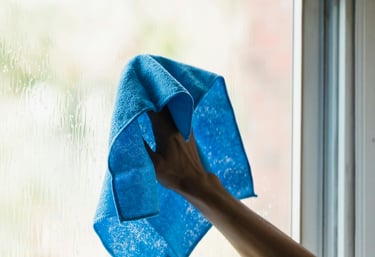 Vi dammtorkar väggar, möbler, lampor och gör rent golv noggrant.