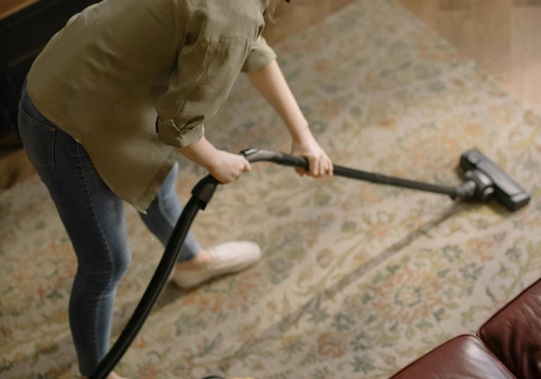 Vi dammsuger även under mattor och på svåråtkomliga platser.